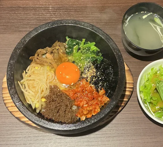 山形牛100%ソボロを贅沢に使って 自家製ナムルとの石焼きビビンパ! おこげで最後まで楽しめます!