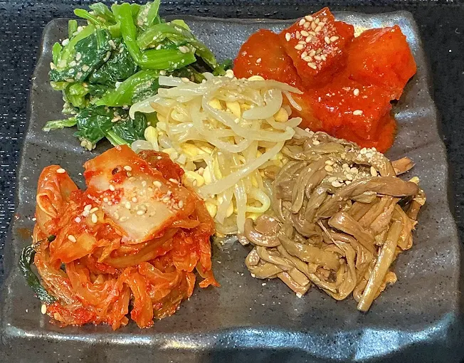 ゼンマイナムル・豆もやし・小松菜 白菜キムチ・カクテキ