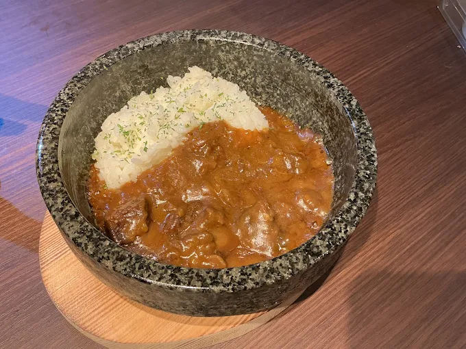 カレーを石焼きにする事で 香ばしくコクが増していきます! 最初と最後の違いも楽しんでください!