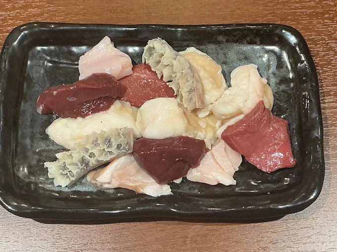 トロホルモン中心に レバー、ハツ、センマイ、ギアラ、ハチノスなど4種類程度。 その日によって変わります。