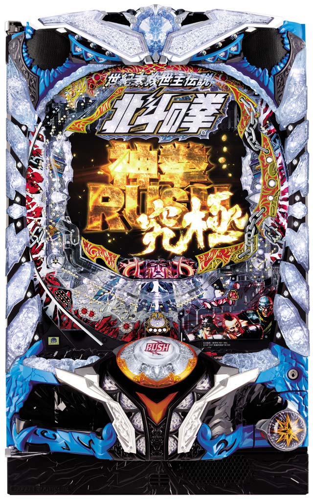 人気シリーズ第8弾は、現行規則の最大出玉である1500発の大当りを搭載したミドルタイプ。3or7図柄が揃えば10R大当りに加え、強力な小当りRUSHに突入する。また演出面では「拳王編」「天帝編」「修羅の国編」という3部作の完全収録に加え、新たに「ZERO編」をステージに採用している。