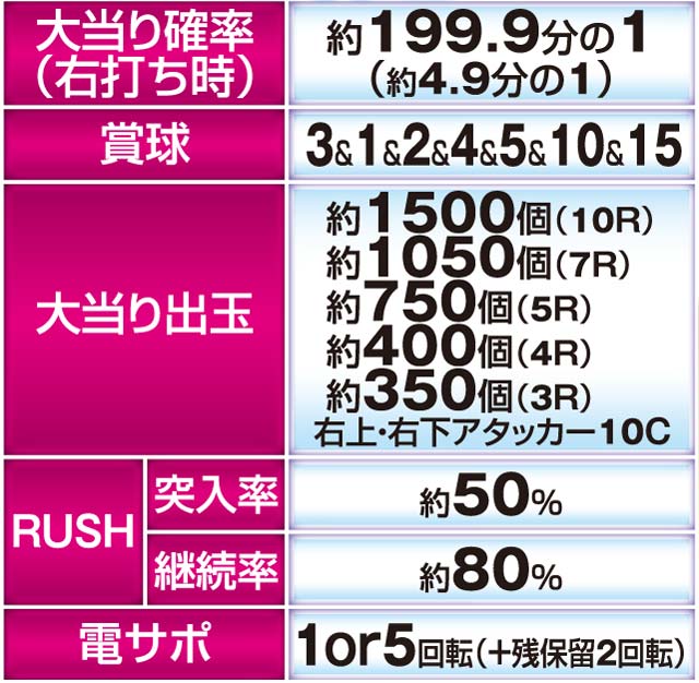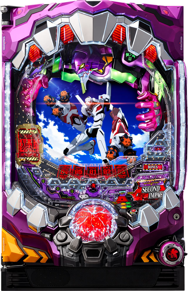 圧倒的人気を誇った『使徒、再び』が新専用枠をまとって新生する。チャンスを呼び込む多彩なギミック&完全継承した演出法則、さらには小当りRUSHとなった暴走モードと、最強出玉トリガーの新生モードも搭載!