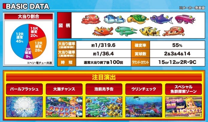 『甘海』の中でも超ロングヒットを記録した『沖海2』の、新規則仕様の復刻版。6段階の設定に加え、新演出も複数搭載している。