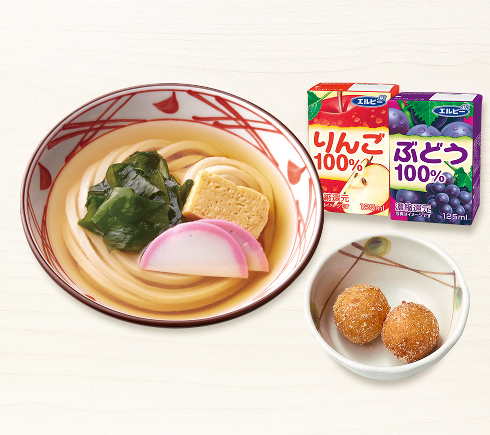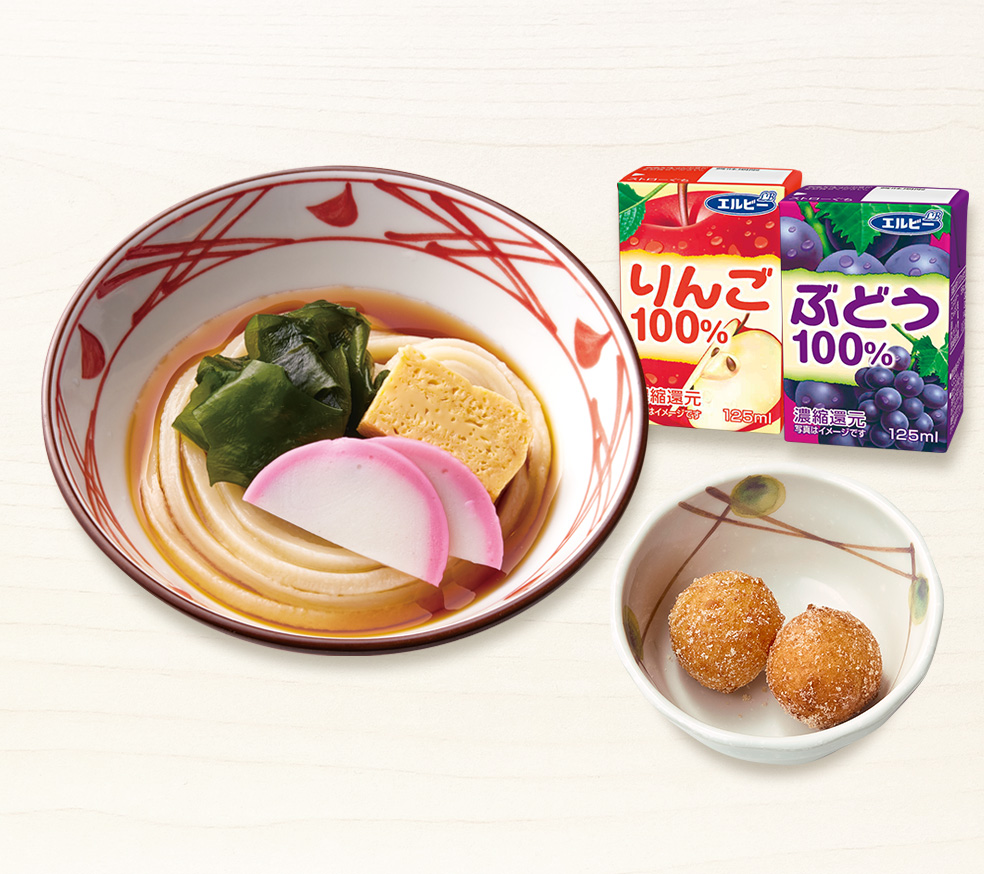 香り高くやさしい味わいのかけうどんと丸亀うどーなつが楽しめる、お子さま向けセット