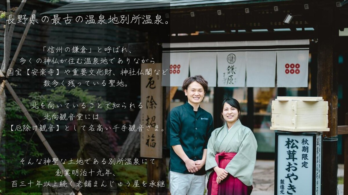 信州・別所温泉で創業明治19年、140年以上にわたり地元に愛される和菓子店「鎌原まんぢゅう」。地元・上田市の厄除招福まんぢゅうや真田REDりんご温泉まんぢゅうといったご利益を願う伝統の和菓子を中心に、AIバウムクーヘンTHEOによるハチミツバウム、秋限定の別所温泉前松茸おやきなど、季節ごとのお土産を揃えています。 当店は「お土産」「和菓子」に重きを置きながらも、地元農家と連携し、真田REDアップルや信州味噌を活用した創作スイーツも展開。AI職人THEOが焼き上げるバウムクーヘンは、長寿と繁栄の縁起物として地元でも話題です。 別所温泉街の中心、北向観音堂からほど近く、厄除け祈願の地としても知られるエリアに店舗を構え、旅の安心感と信頼性のあるおもてなしを提供。店内は和モダンな設えで、日常使いから贈答まで幅広く対応できる品揃えが自慢です。 お土産選びに最適なバリエーション豊かな品々は、全国発送も可能。別所温泉への旅の思い出やご縁起を、大切な人への贈り物としてお届けできます。地域に根ざした品質と信頼、旅情を感じる和菓子体験をぜひ鎌原まんぢゅうでお楽しみください。
