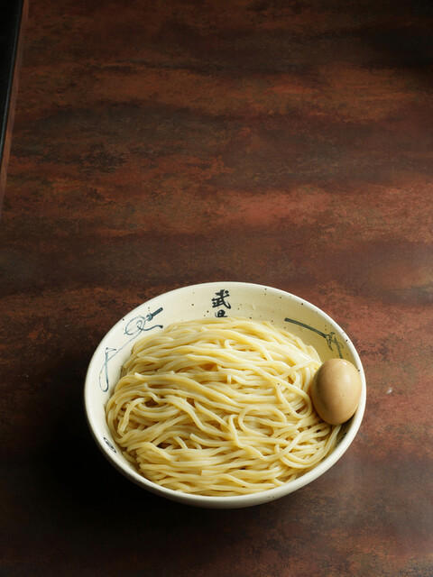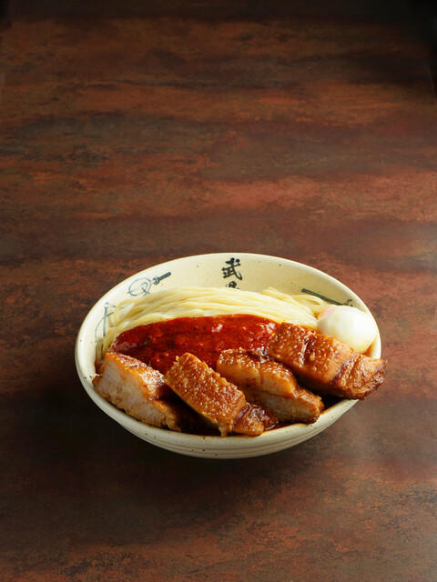 麺屋武蔵 武骨外伝の特徴は、外伝特製の餡と温玉が乗った濃厚外伝黒つけ麺。 数種類の魚介を合わせて仕上げた濃厚豚骨スープとつやつやモチモチの中太麺が絶妙に絡みます。 餡と混ぜて食べてもよし、温玉と絡めて食べてもよし、天かすをベースに作られたピリ辛サクサクの外伝特製七味や柚子酢を加えて食べてもよし。一杯で何度でも楽しめる、至高の一杯となっています。 Menya Musashi Bukotsu Gaiden features the rich "Gaiden Special Black Tsukemen, " topped with a special sauce and a soft-boiled egg. The thick pork bone broth, made with a blend of various seafood, perfectly complements the glossy, chewy medium-thick noodles. You can enjoy it by mixing in the sauce, combining it with the soft-boiled egg, or adding the crispy, spicy "Gaiden Special Shichimi" and yuzu vinegar for an extra kick. This bowl offers multiple ways to savor its exquisite flavors, making it a supreme dish that you can enjoy time and time again.