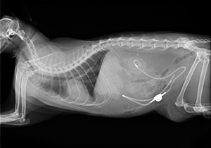 繁殖には、交配、妊娠、出産という流れがあります。当院では、プロゲステロンというホルモン測定を院内で行い、適切な交配適期を判定し受胎率を高めること、出産予定日がわからない場合にも分娩開始の推測に役立てています。交配後は、約1か月後に超音波検査による妊娠診断、出産予定の約1週間前にレントゲン検査で胎仔数と大きさを確認し、自然分娩が可能かどうかの判断をします。