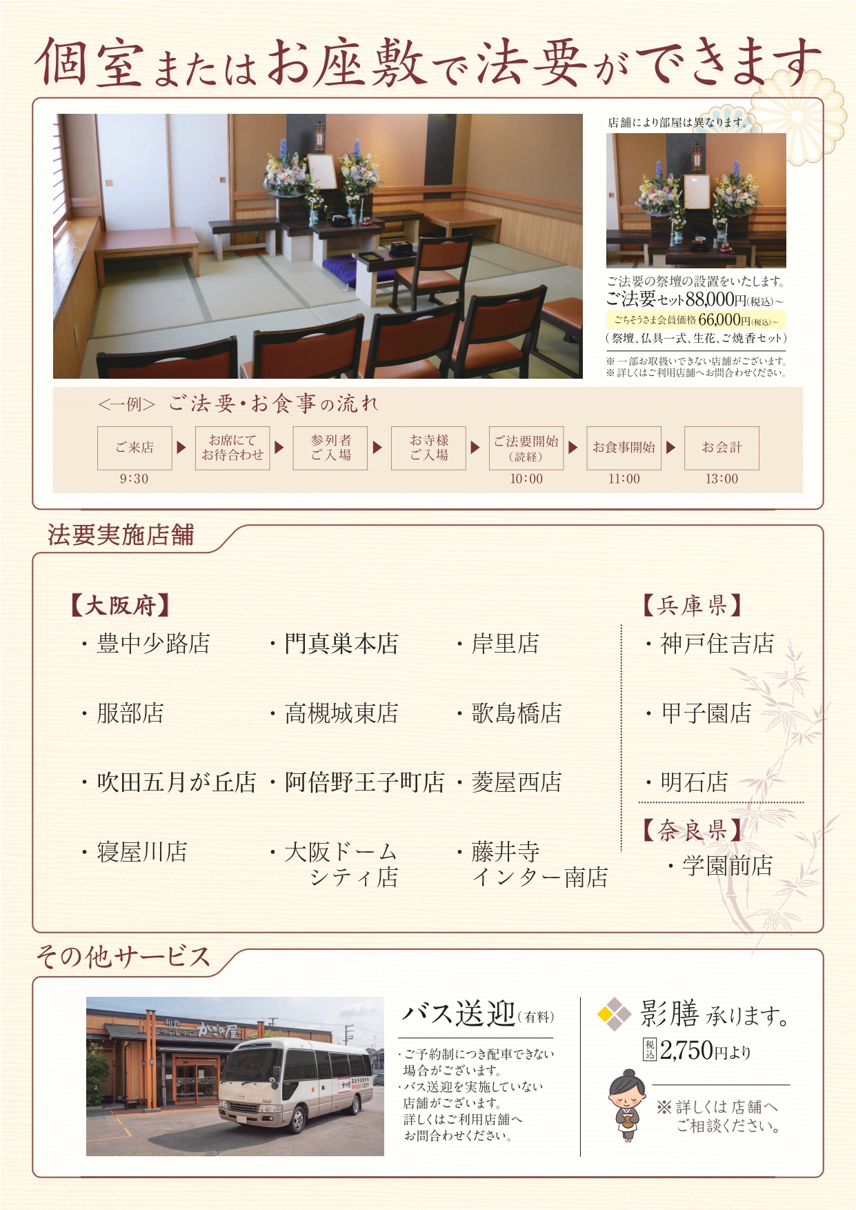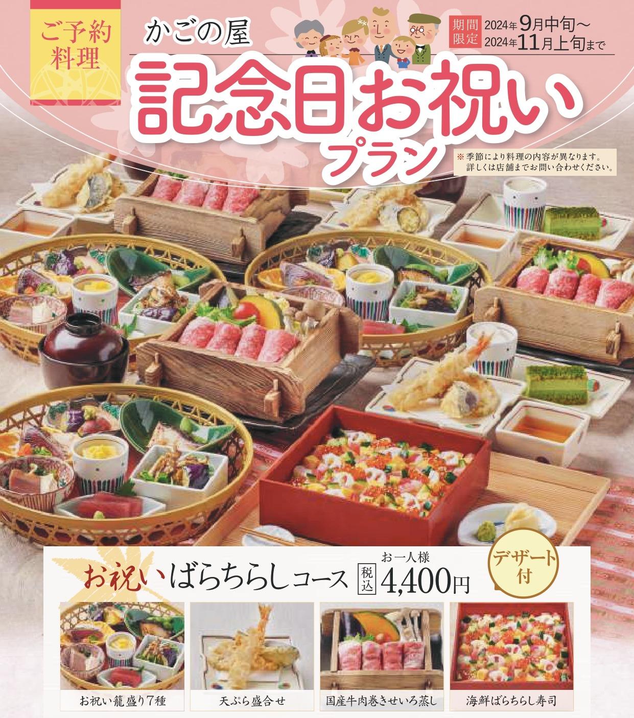 お食い初め:2,750円/祝い鯛:1,650円/ホールケーキ:3,850円~/季節の花束:4,400円~(Start of meal: 2,750 yen / Celebration sea bream: 1,650 yen / Whole cake: 3,850 yen ~ / Seasonal bouquet: 4,400 yen ~)