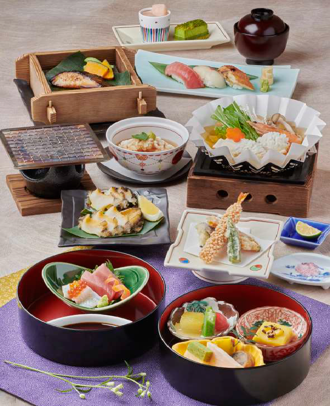 先付・八寸・お造り・焼物・揚物・にぎり寿司・茶碗蒸し/Appetizer, hassun, sashimi, grilled food, fried food, nigiri sushi, chawanmushi