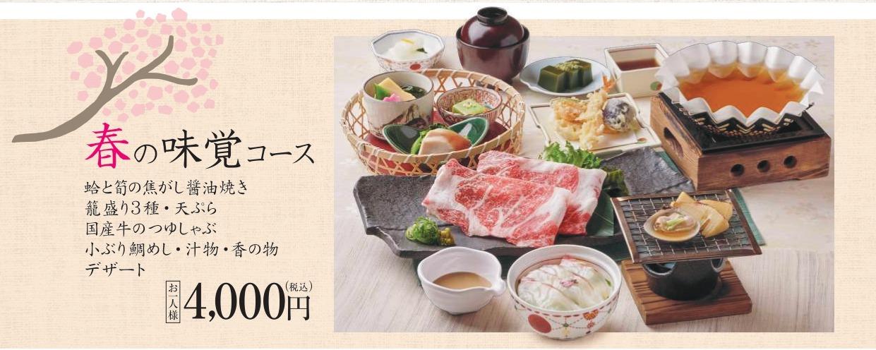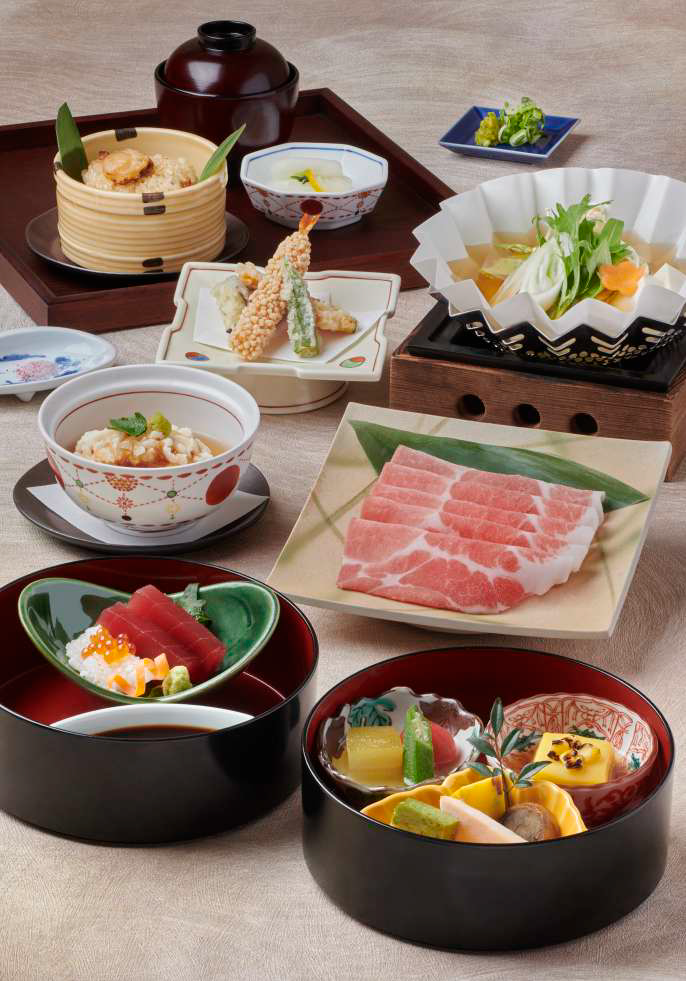 前菜・お造り・焼物・煮物・揚げ物・国産牛しゃぶしゃぶ小鍋・季節の飯もの・汁物・香の物・デザート(Appetizers, sashimi, grilled dishes, boiled dishes, fried dishes, domestic beef shabu-shabu small pot, seasonal rice dishes, soups, pickled vegetables, desserts)