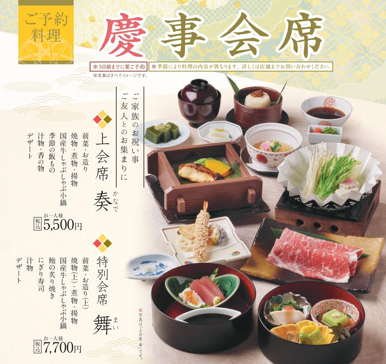 先付・八寸・お造り・焼物・揚物・にぎり寿司・国産牛すきやき・茶碗蒸し