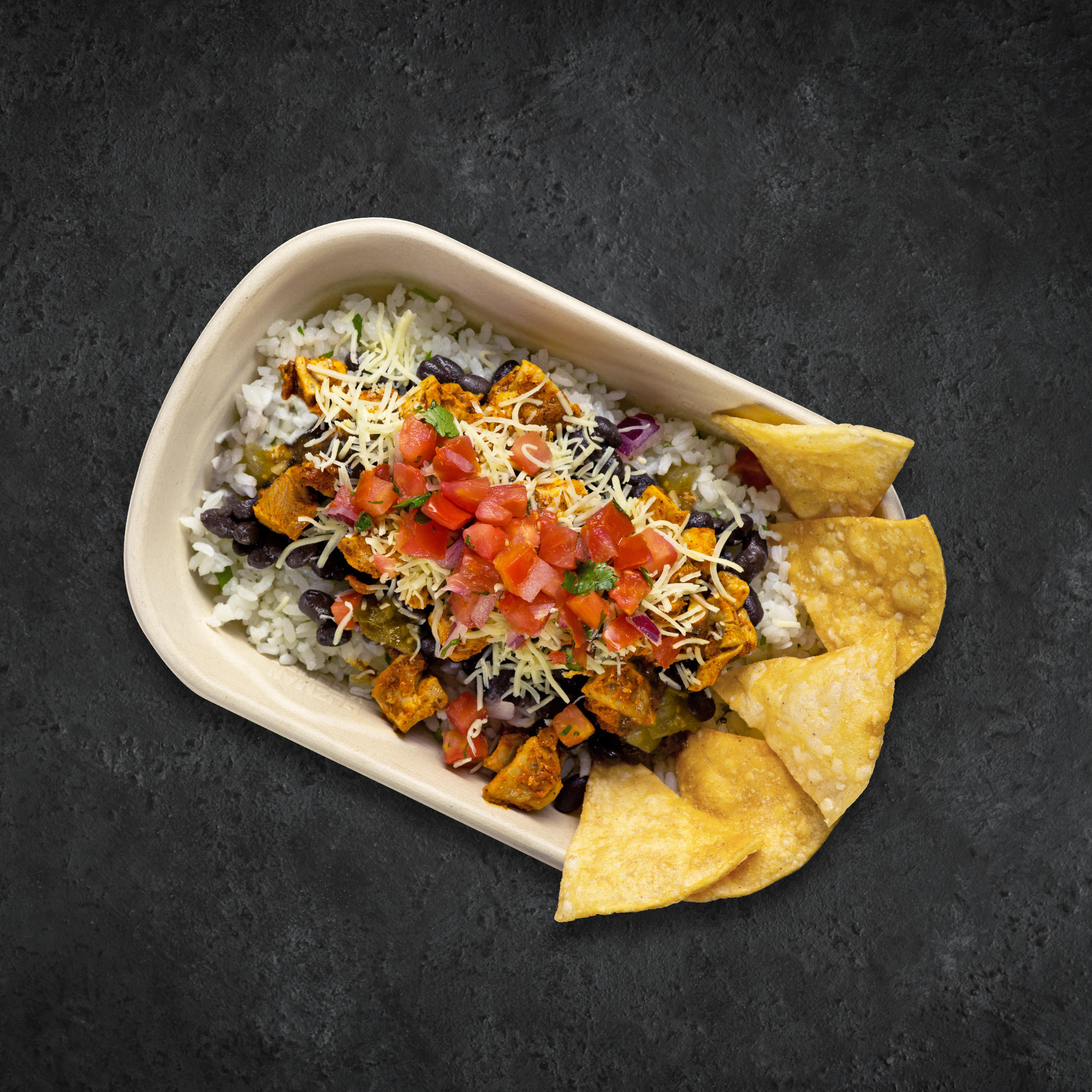 ライス, ジャックチーズ,ブラックビーンズ,サルサ&フィリング。そして GYGのコーンチップスを添えてご用意致します! ◆お選び頂けるフィリング: - グリルチキン - 煮込んだポーク - 煮込んだビーフ ※レギュラー+50円 ラージ+100円 - 白身魚 - ソテーした野菜とワカモレ(アボカドペースト) ※レギュラー+50円 ラージ+100円