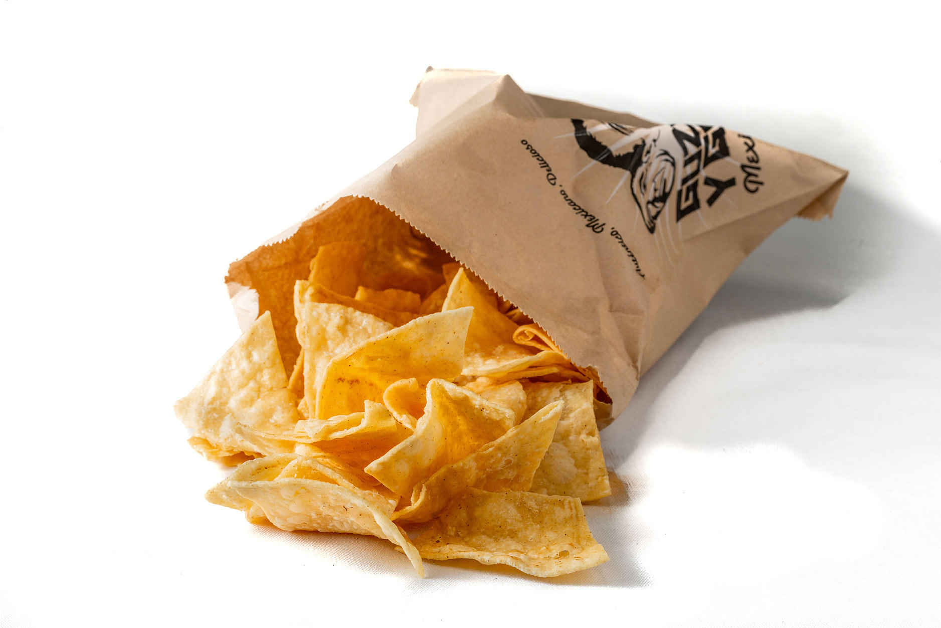 パリパリのコーンチップスです。 お好みでコンディメントバーにあるソースをつけてお召しあがり頂くと更に美味しくなります。