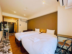 ツインルーム(ドラム式乾燥洗濯機・ミニキッチン付) 1名利用時3,000円~ お食事なしの素泊まりプラン 当ホテルは那覇最大の繁華街 松山にあり、 那覇市の官庁街 久茂地まで徒歩8分の好立地! モノレール県庁前駅から徒歩6分!波の上ビーチも国際通りも徒歩圏内♪ 観光に!ビジネスに!是非ご利用下さい☆