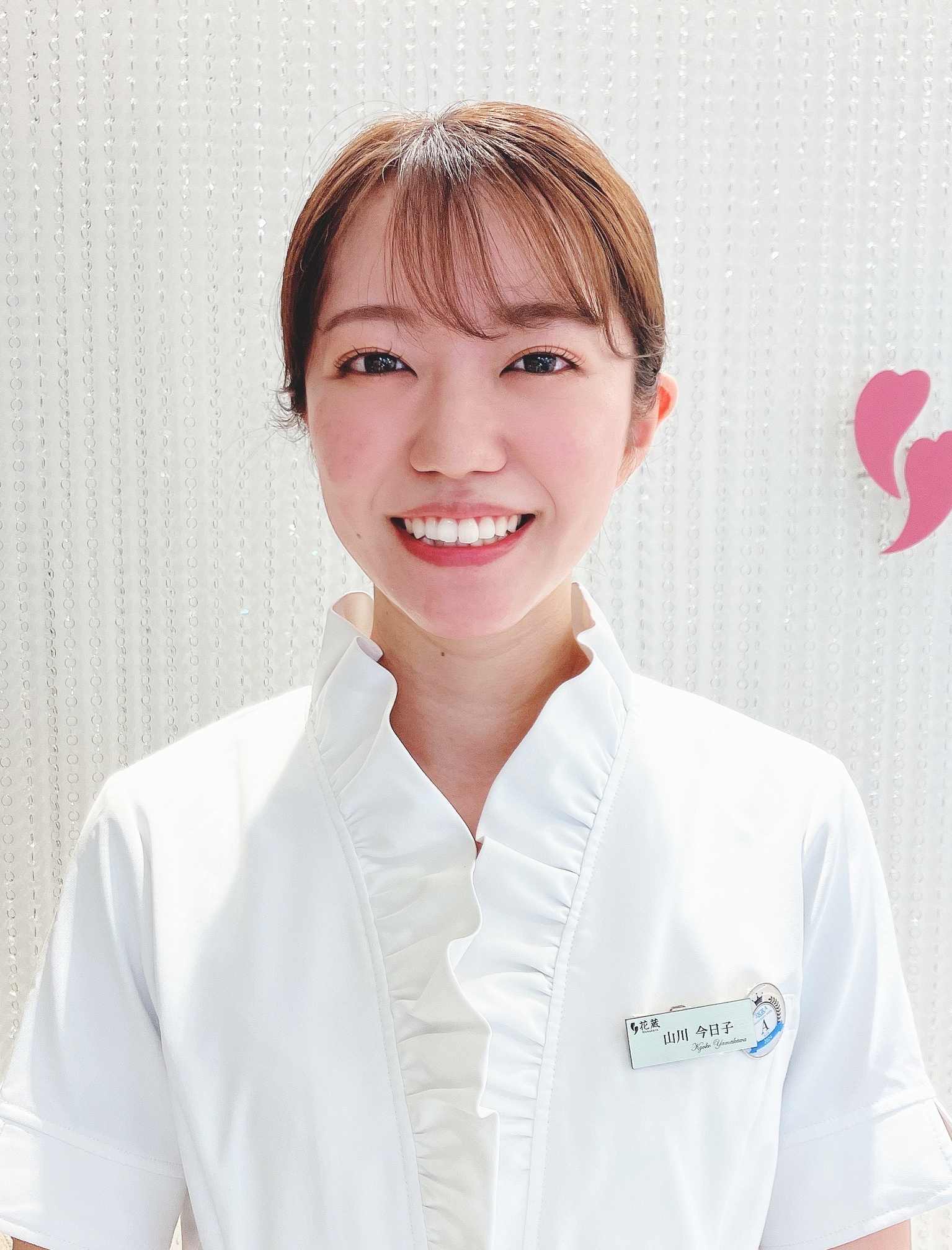 私は、熊谷八木橋店でフロント業務を担当させていただいております。 新しいお客様をお迎えするたびに、次はどんな方とお会いできるだろうと、とてもワクワクしております。そしていつも、トリートメントを終えてお帰りになるお客様のお姿に、とても感動しています。お肌にハリと透明感が出て、表情まで美しくなっているからです。 そのたびに、花蔵のスタッフの技術力に驚いています。 いつも明るく居心地のよいサロンであり続けるよう、これからもがんばってまいります。