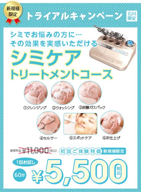 60分(初回ご体験価格) シミでお悩みの方に…その効果を時間いただけます 通常価格11000円