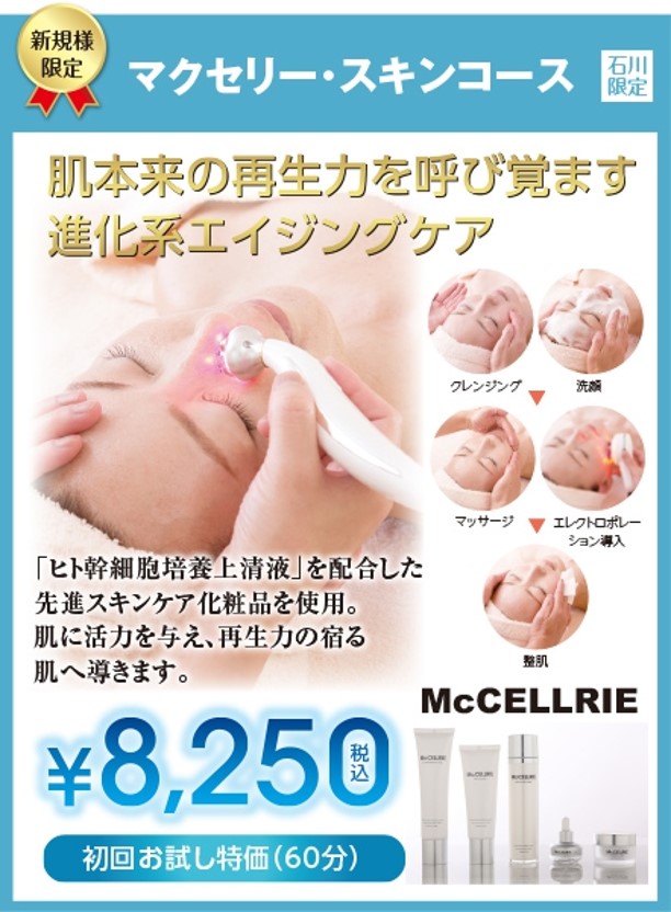 60分(初回お試し価格) 肌本来の再生力を呼び覚ます進化系エイジケア 「ヒト幹細胞培養上清液」を配合した先進スキンケア 化粧品を使用。 肌に活力を与え、再生力の宿る肌へ導きます。