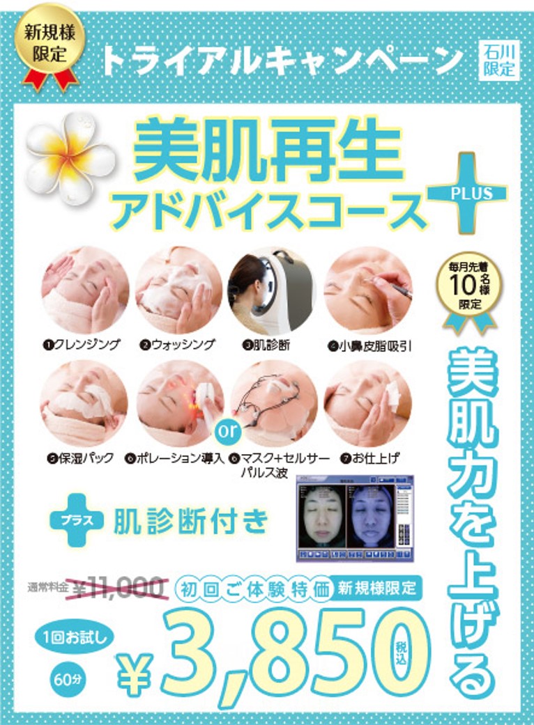 毎日10名様限定 60分(初回ご体験価格) 美肌力を上げる+肌診断付き 通常価格11000円き