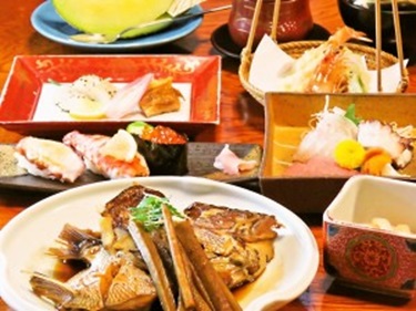 【コース内容】付出し、造り、煮物、焼き物、油物、蒸し物又は酢の物、寿司、赤出し、果物 ※会席料理は内容が季節により品数が変更することが有ります。ご了承下さい。 ※ご予算に応じ承ります。