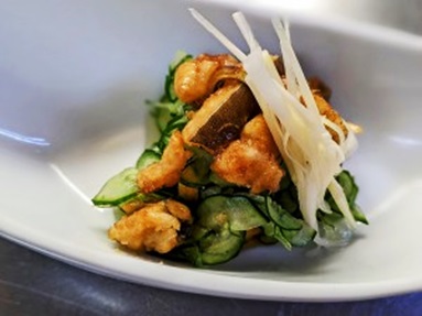 フワフワ穴子と胡瓜の食感のコントラストが美味しいです。 自家製の土佐酢と針生姜が良い仕事をしています。