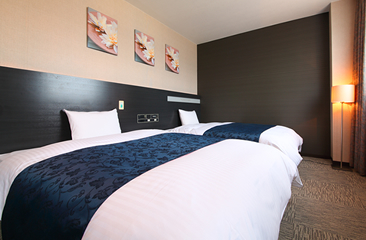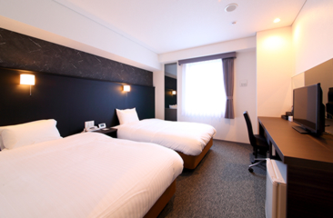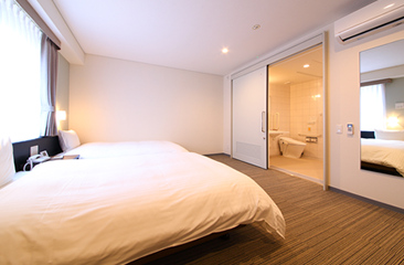 デラックスツインルームをバリアフリー仕様に対応させたお部屋です。お体の不自由な方にも快適にお過ごしいただける設備を備えスペースを広く取っております。