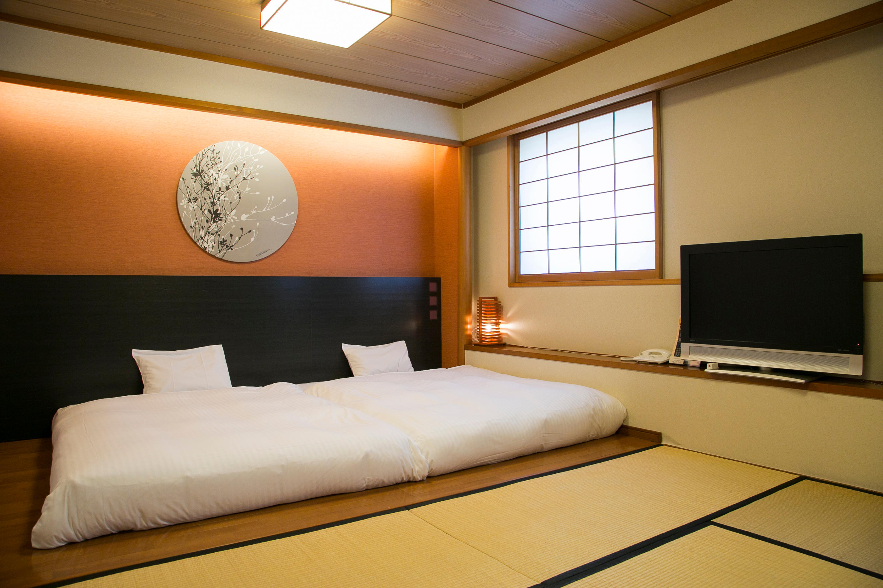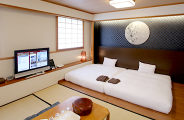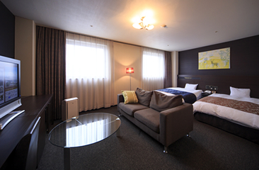 36㎡の広いお部屋にリラックスできる畳敷きの和室とダブルベッドを2台並べた洋室が同居したゆっくり過ごせるお部屋です。客室は全てLAN対応しておりますので、ご旅行先の観光検索も気軽にご利用できます。