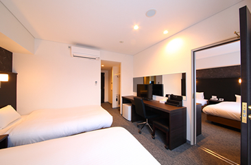 新館6階には部屋の中扉から隣の部屋に行き来ができるコネクティングルームを設けているため、ご家族・グループのご旅行に最適です。 3名様、4名様が利用できるヨーロピアンタイプの客室です。