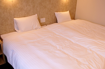 お部屋は特注のフランスベッドマットレスを使用したこだわりのリラックス空間です。 全室ツインベッドをつなげてダブルベッドとしてご利用できる、ハリウッドスタイルにレイアウトが可能です。