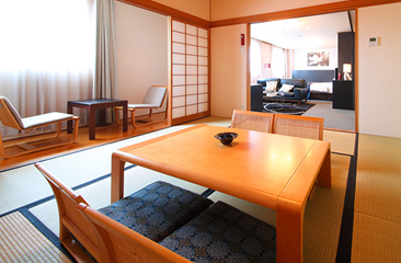 本館最上階にあるスイートルーム。最高の眺望とおもてなしでお迎えします。ゆったりとした広い空間で贅沢な時間をお過ごしいただけます。 和室もご用意してあり、大人数のご宿泊にもご利用できます。