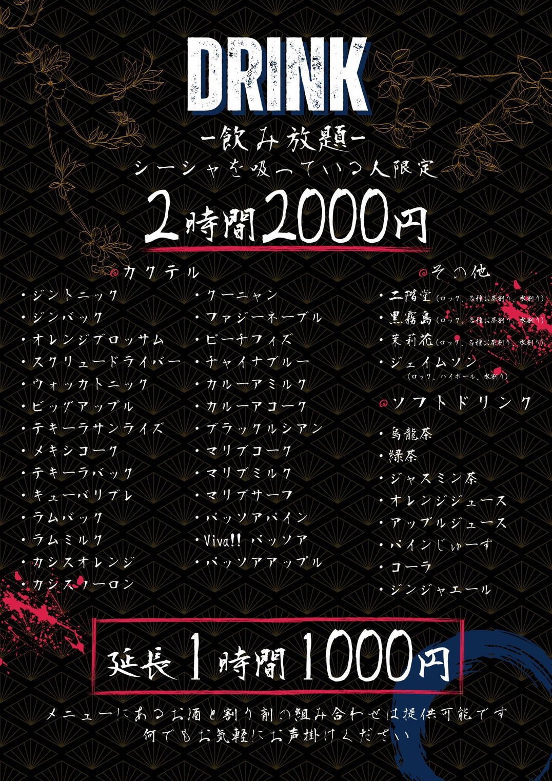 シーシャを注文いただいた方限定のメニューです(This menu is limited to those who order Shisha.)