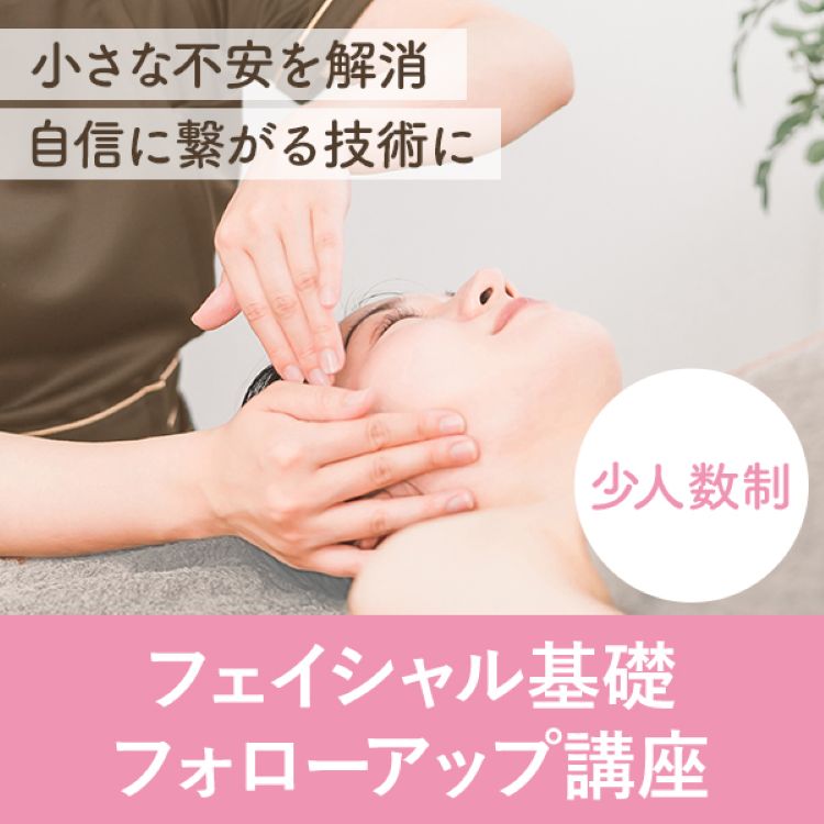 本講座は、「フェイシャルトリートメント基礎講座 1~3」をご受講いただいた方限定のフォローアップ講座です。 上記講座を受講したけど、技術をもう少し練習したい方へおすすめ!