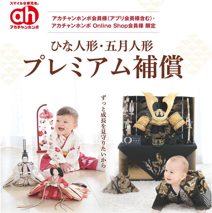アカチャンホンポポイント会員様、ネット通販購入者様が、アカチャンホンポ全店、アカチャンホンポネット通販で「ひな人形」「五月人形」のいずれかを購入いただくと、購入日より5年間、日本国内で発生した破損、盗難、火災などの偶然かつ外来的に損害を被った場合「付与するポイントの額」に定めるアカチャンホンポポイントを付与いたします。 ※購入履歴がデータ上で確認できない場合、補償の対象外となる場合もございます。贈答品などで対象商品を譲り受けた場合は、ご購入者様の購入履歴が必要となります。 詳しくはアカチャンホンポ店頭またはネット通販にてご確認ください。