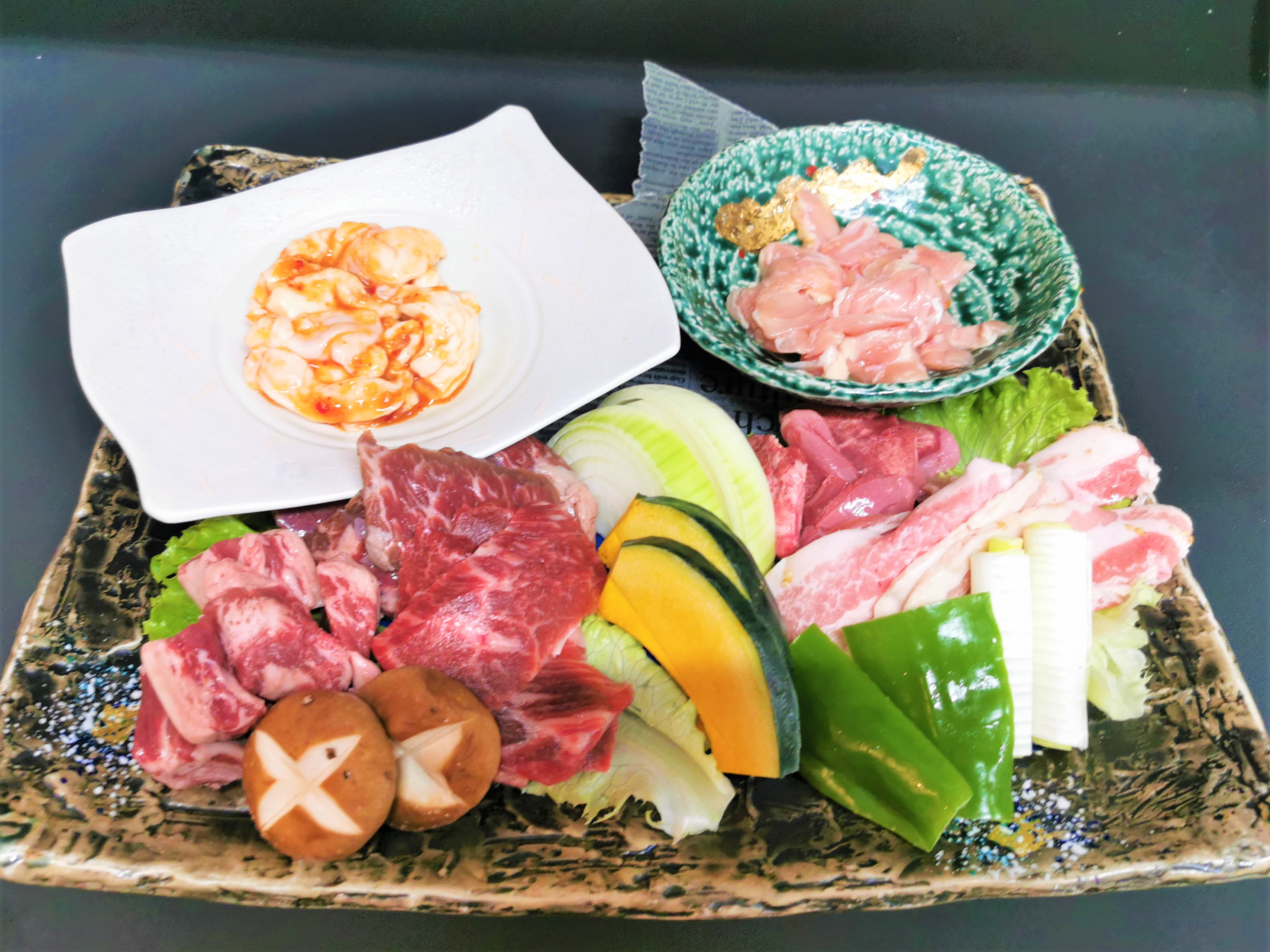 いけだ牛カルビ、USサガリ、豚味噌ホルモン、並牛タン、焼野菜、キムチ、ナムル